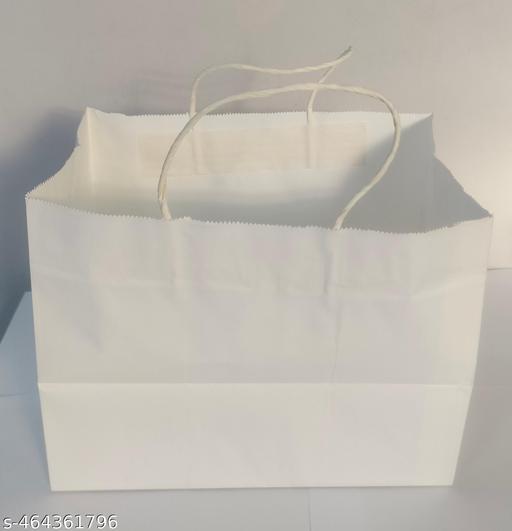 WHITE PAPER BAGS WITH HANDLE (Customisations in Size and Prints Available)